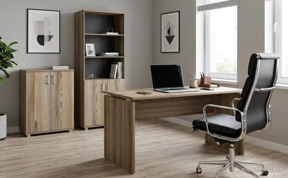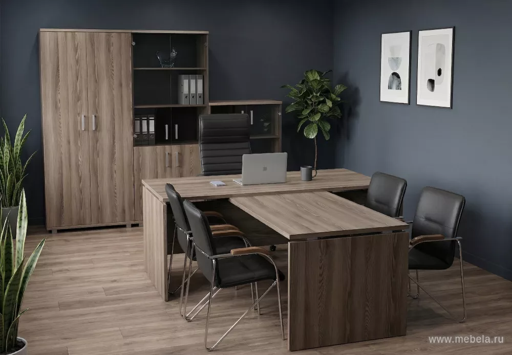 При создании мебели Аргентум были применены необычные решения, как на конструкторском, так и на дизайнерском уровнях. Столы повышенной длины и необычного типа сборки сочетаются здесь с грубо фактурным рисунком дерева на ламинированных панелях ДСП. Все это делает гарнитур не только стильным, но и многофункциональным.