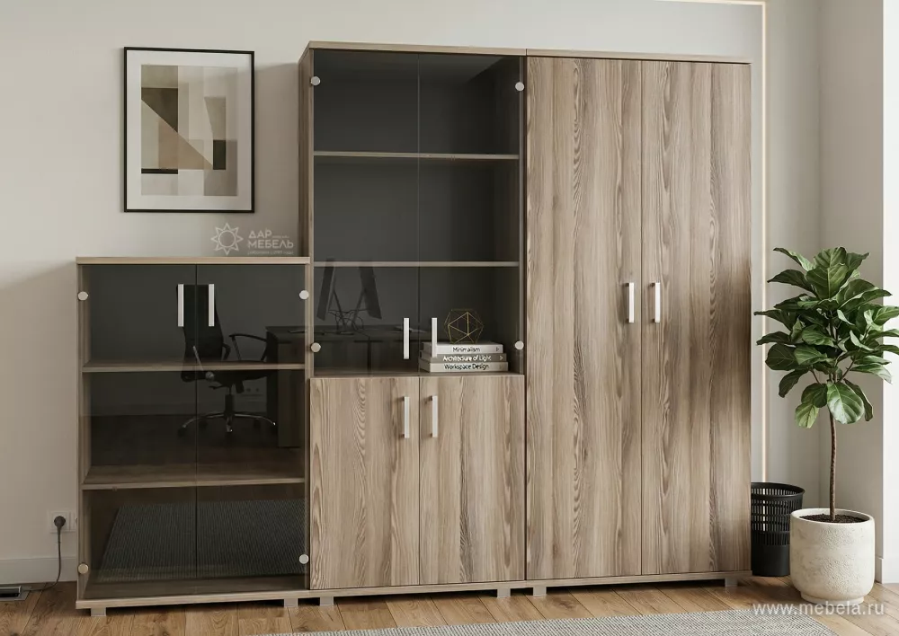Офисный шкаф широкий высокий закрытый 4 двери (ЛДСП + стекло)