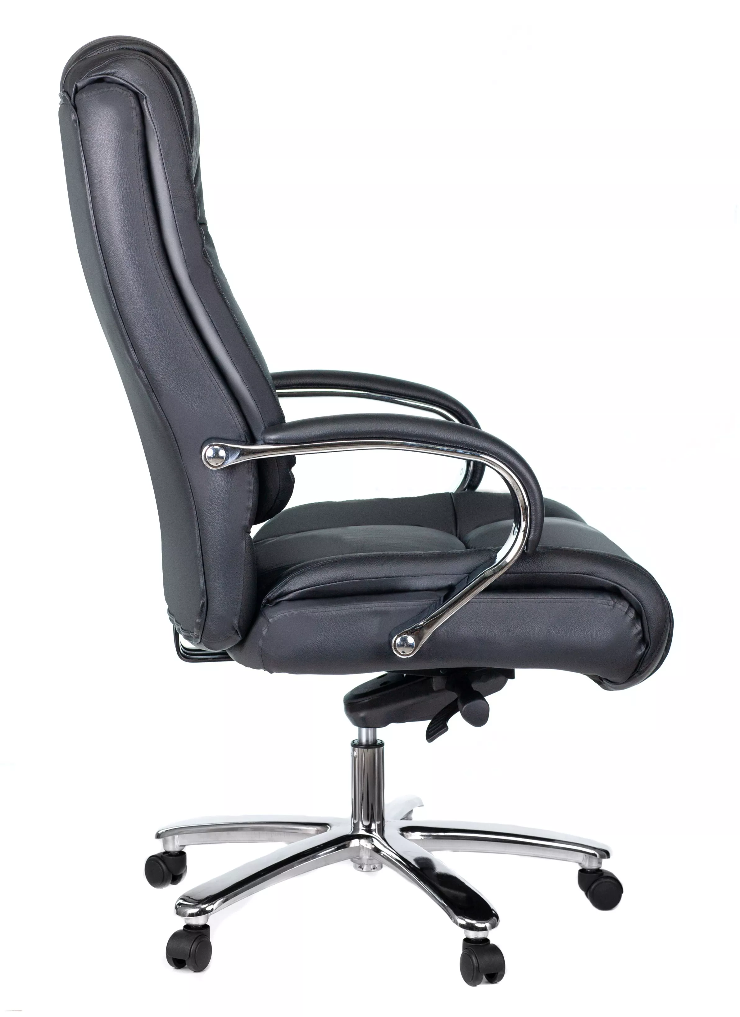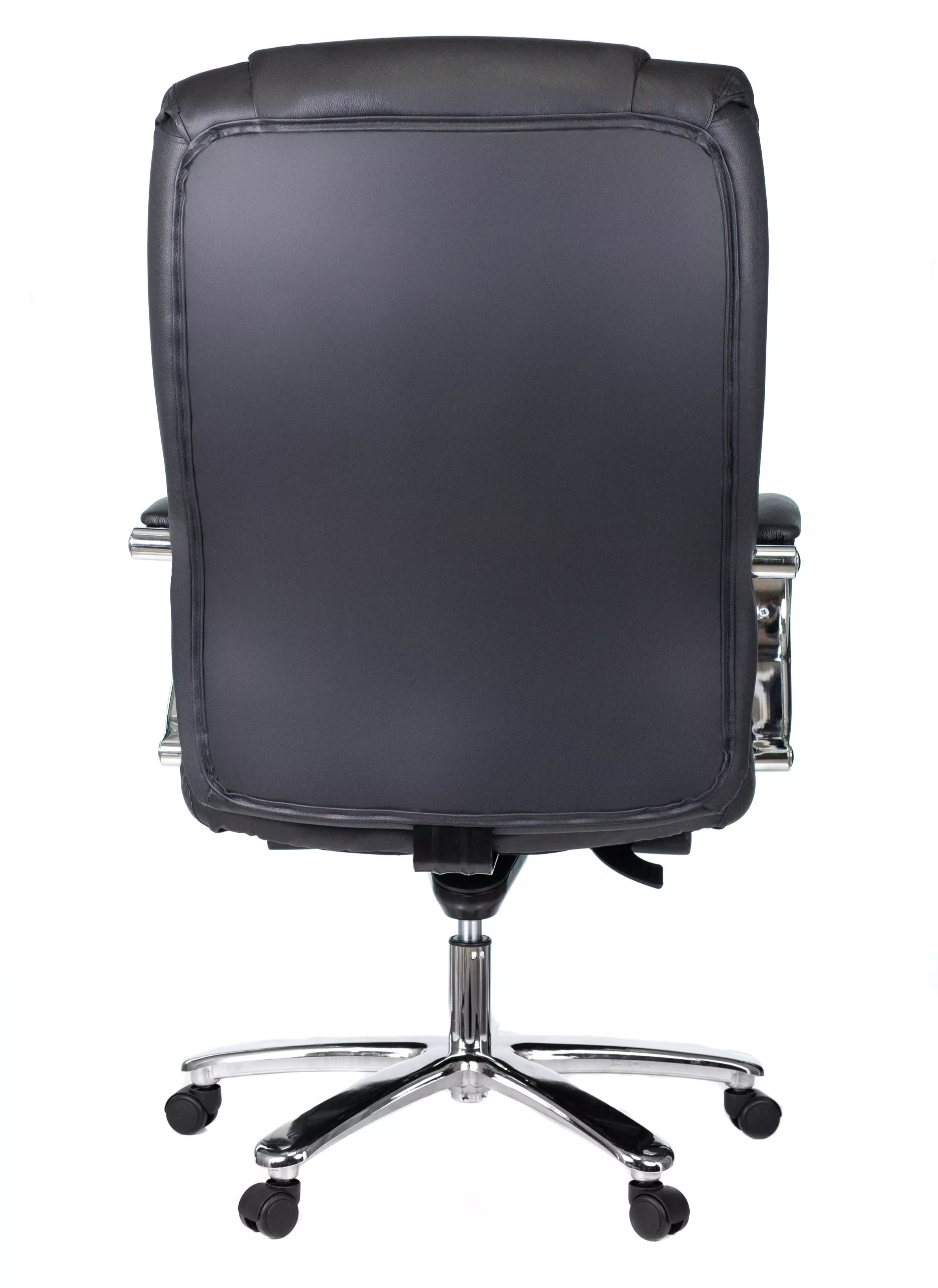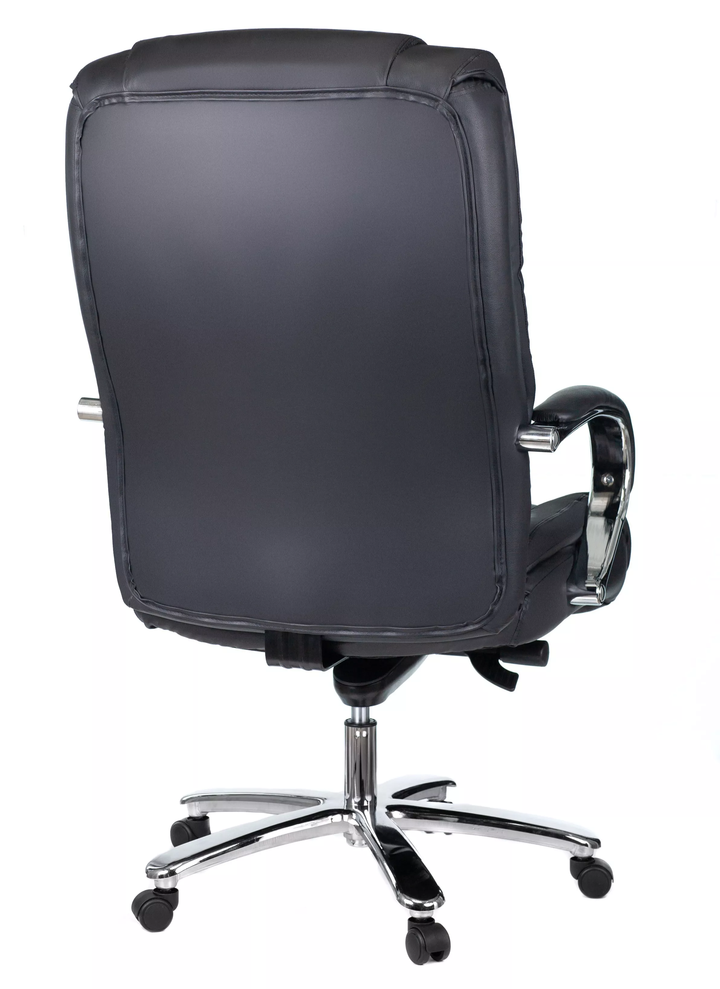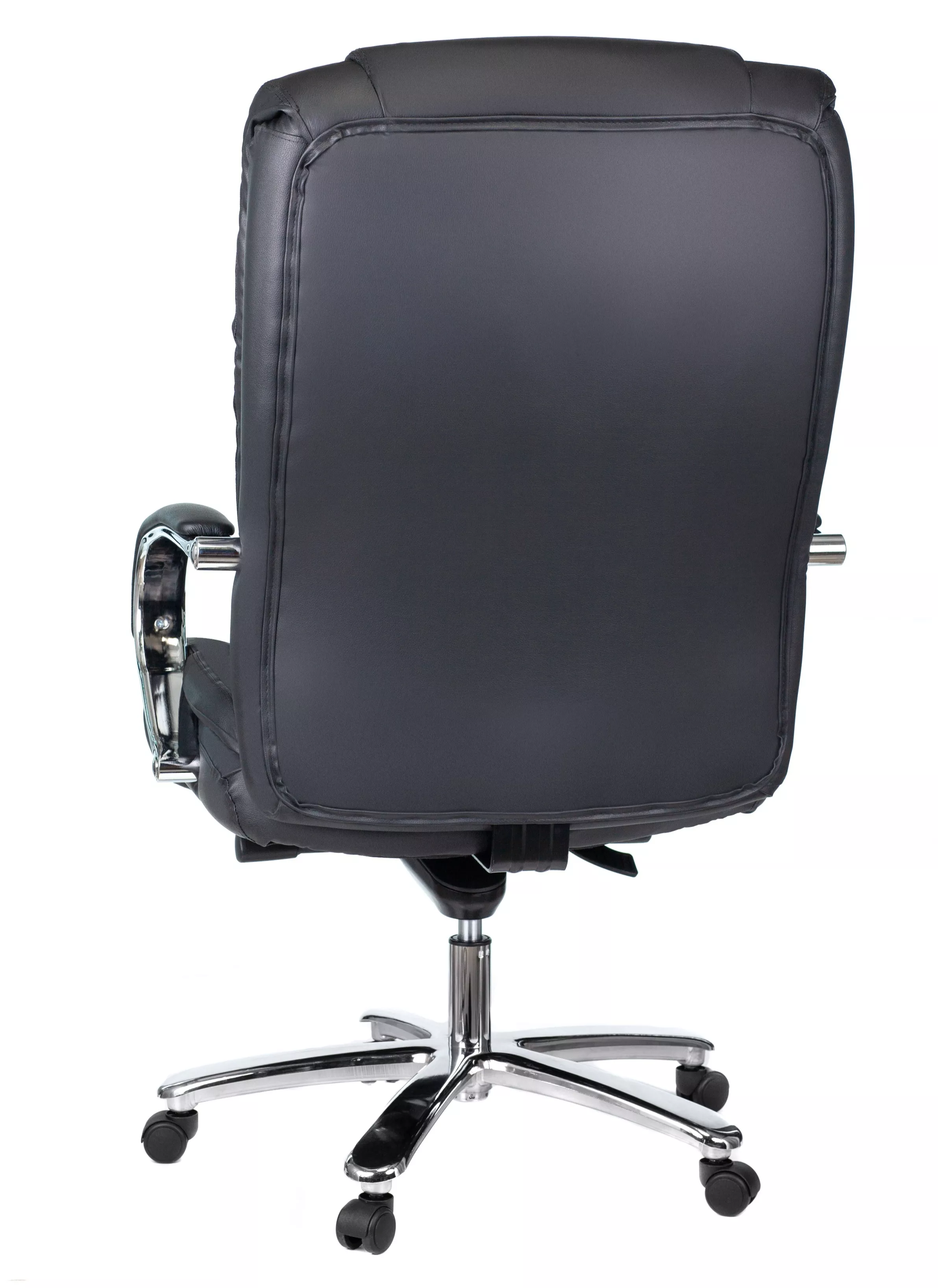 Кресло изготовлено из высококачественной экокожи черного цвета, которая отличается прочностью, гибкостью и долговечностью. Внешнее покрытие выглядит презентабельно и не поддается загрязнениям. Пластиковые колеса подходят для любого покрытия. Они не поцарапают ламинат, линолеум или паркет. Зафикси...