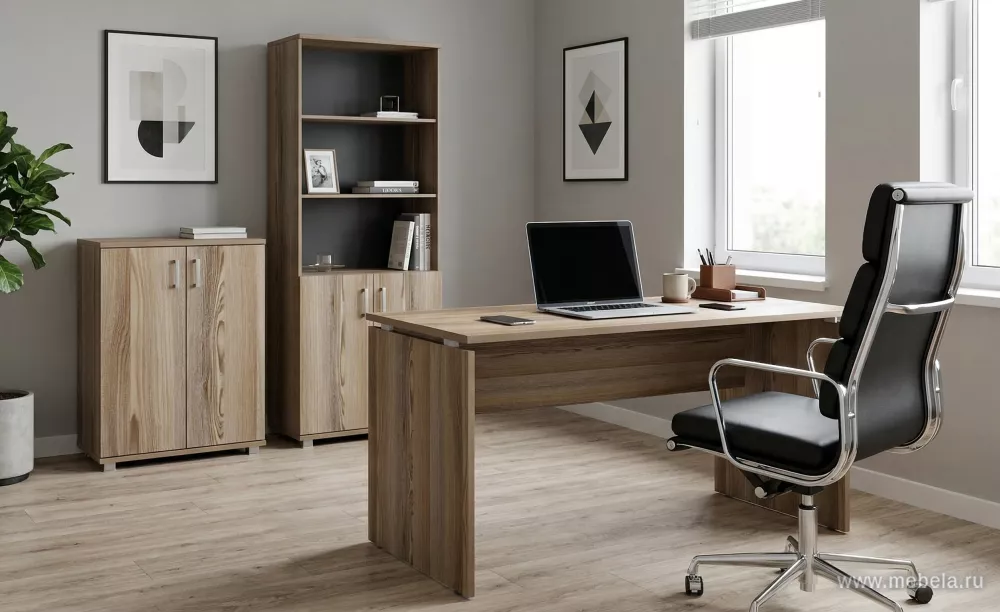 При создании мебели Аргентум были применены необычные решения, как на конструкторском, так и на дизайнерском уровнях. Столы повышенной длины и необычного типа сборки сочетаются здесь с грубо фактурным рисунком дерева на ламинированных панелях ДСП. Все это делает гарнитур не только стильным, но и многофункциональным.