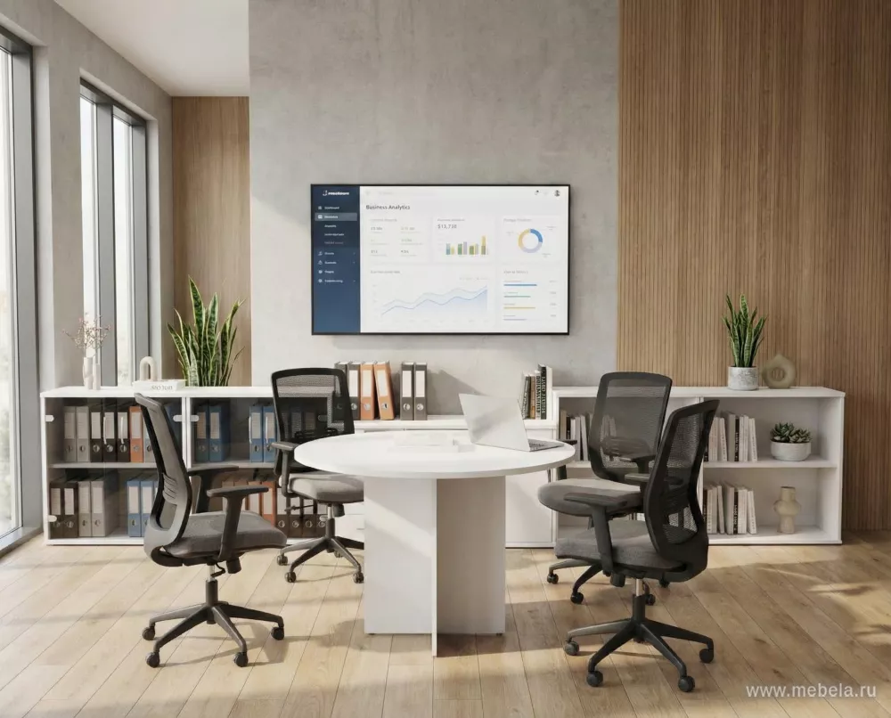 Экономичный класс мебели для офисов представляют столы для переговоров Рива (Riva). Несмотря на простоту своей конструкции, они могут предложить своим пользователям нечто большее, чем просто стандартную функциональность. Двухцветные схемы элементов позволяют создать уникальный дизайн.