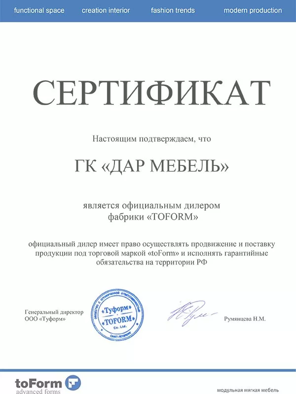 Мы являемся официальными и авторизованными дилерами крупнейших фабрик: России, Италии, Испании, Германии, Тайвань, Малайзии, Китая, и стран СНГ. Всё это документально подтверждено сертификатами.