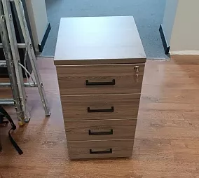 Дополнительно размещены шкафы из серии «Стайл» в цвете дуб навара, обеспечивающие удобное хранение документации и поддержание порядка во входной зоне.